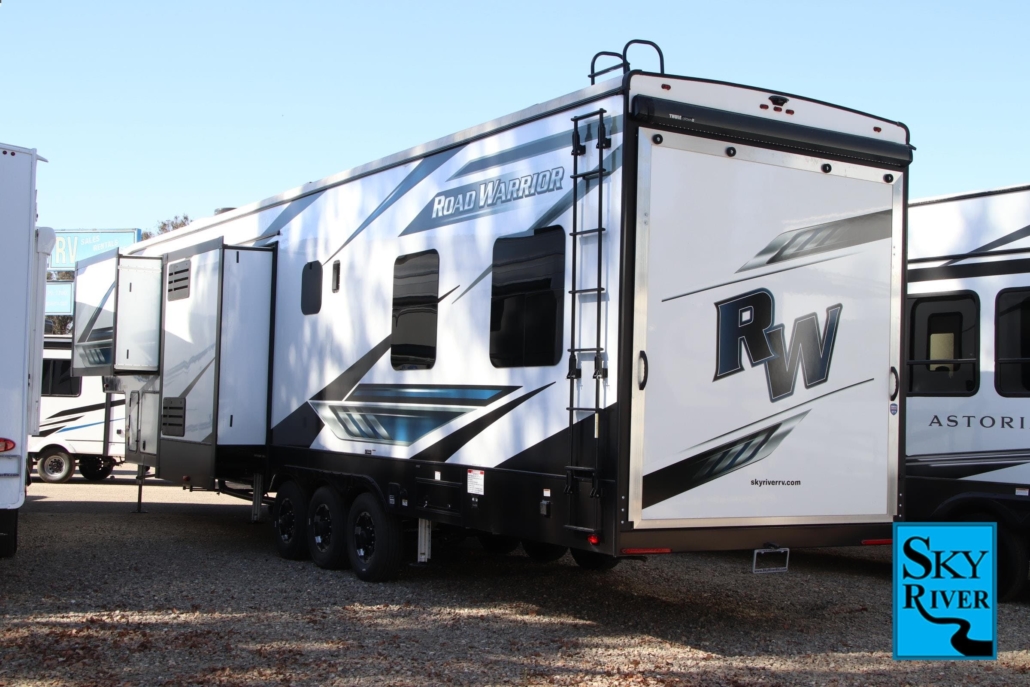 If you have big toys that you want to bring with you when camping or you want to have some extra sleeping space, the Heartland Road Warrior 3965 is a great fit! It has some of the luxurious feel that people enjoy in RVs while also including a 15' garage. There is a half bath from the garage that makes it easy to cut down on dirt being tracked throughout the interior and there is the option for a queen bed-split bench seat to use in the garage once it's emptied. There is also a door between the living space and garage space helping you to enjoy each space even more.