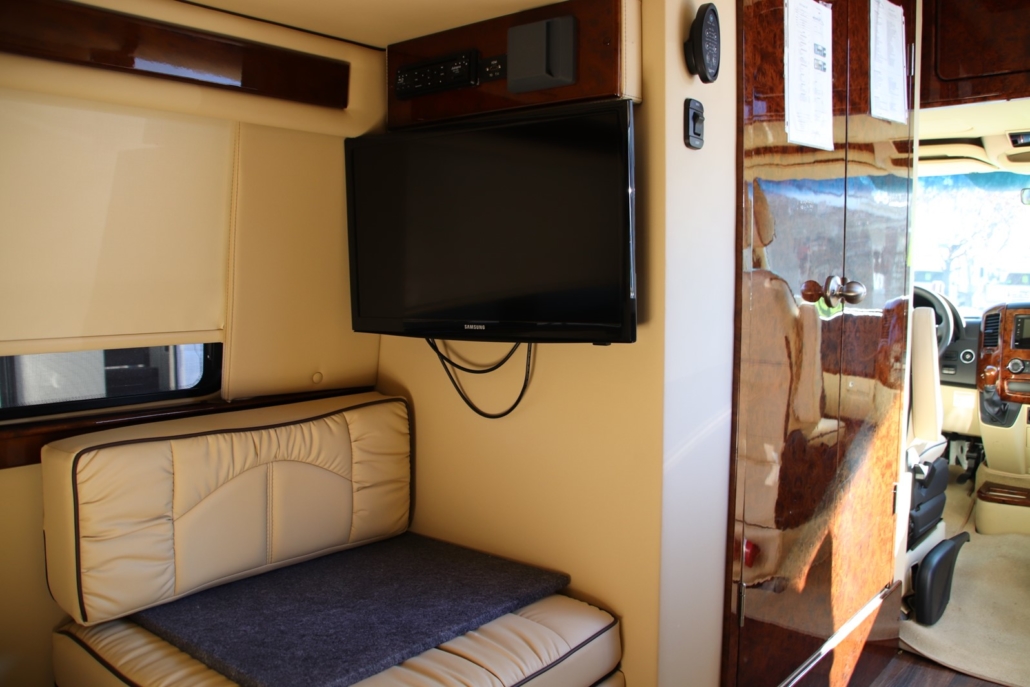 If it's time to upgrade in order to down-size then this Class B camper van might be the perfect option for you. It still has the amenities that you're looking for such as space to prepare meals, a bathroom, and even a TV so you can kick back with your favorite shows on the road.