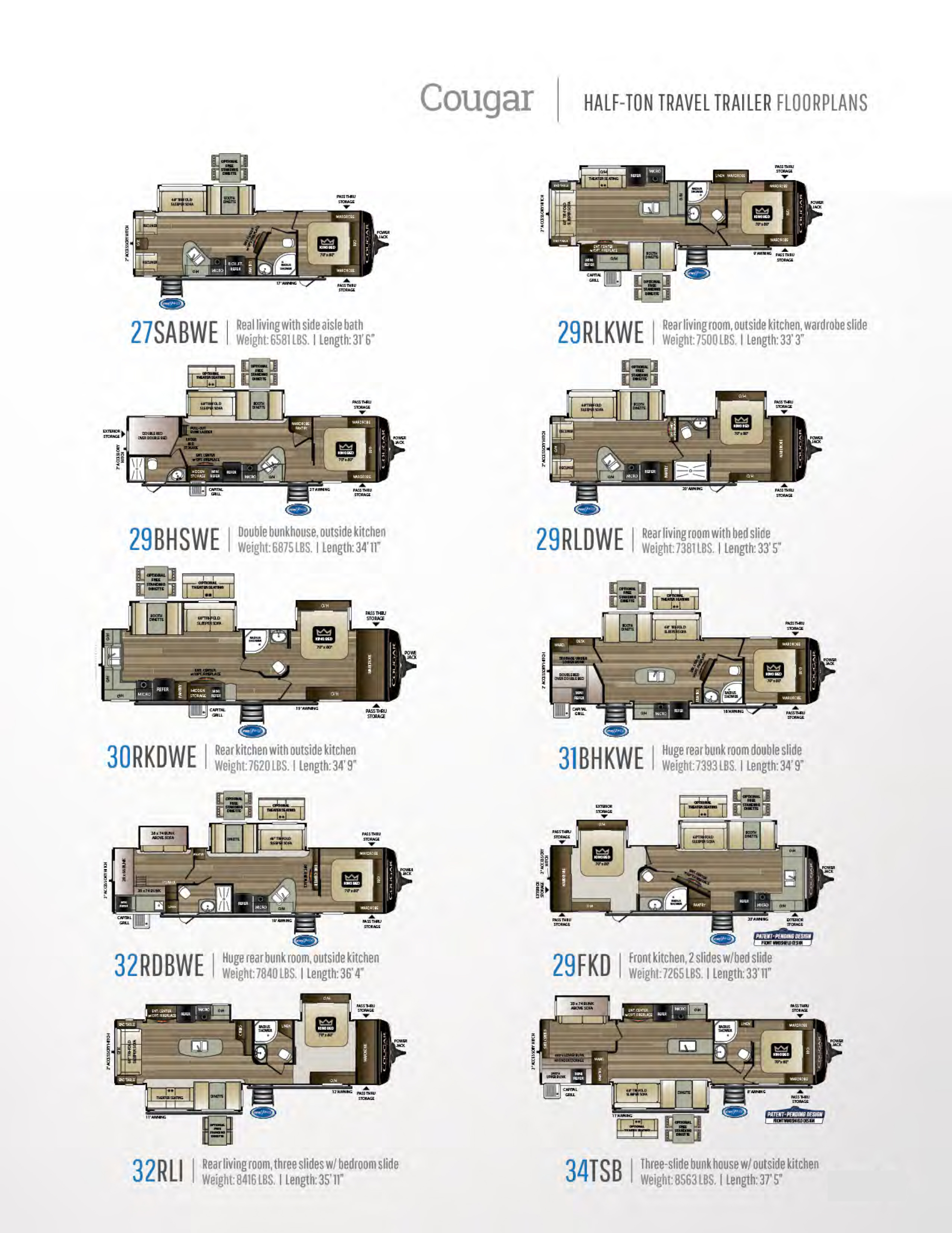 Committed to innovation, quality, style, and affordability, Keystone’s Cougar brand sells more mid-profile fifth wheels and luxury travel trailers than any other brand. The Cougar line-up is designed to grow with your family, from your first RV to your last. Cougar takes the time to understand how you travel in each life stage, so that they can provide families with the best camping experiences, year after year, Cougar after Cougar.