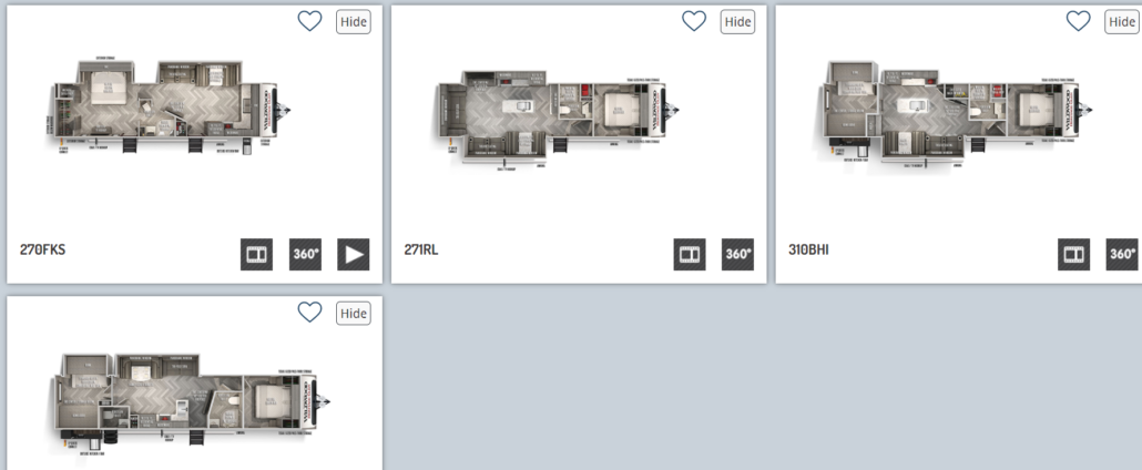 If you're looking for more space than the Wolf Pup offers, the Forest River Wildwood Heritage Glen has options for travel trailers and fifth wheels giving you even more options to choose from. You can easily fit the entire family, even if you have a large family, comfortably with these floorplan options.