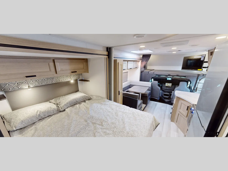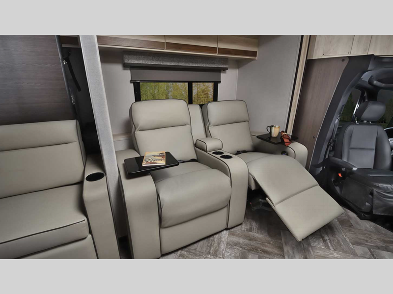 Each model includes an EZ Ryde upgraded suspension system for a smooth drive each time, plus a 10" touch screen and backup camera/side view cameras with a 3-way monitor for easy maneuvering at the campground. The 2" aluminum framed laminated sidewalls and SuperLite composite substrate provide a strong motorhome made to last, and the block foam insulation means you can camp year around. Head inside to find black out roller shades, soft touch self-closing drawer guides, an oxygen-infused shower head, plus a 12V USB charging station to keep your electronics charged and ready to go.