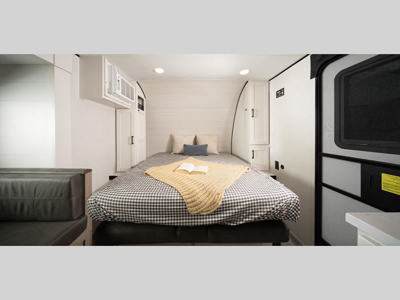 Sleeps 4 Slides 1 Interior Color Country Linen Tire Size ST205/75R14D Furnace BTU 20000 btu Available Beds Queen Refrigerator Type 12V Refrigerator Size 8 cu ft Cooktop Burners 3 Number of Awnings 1 LP Tank Capacity 20 lbs. Water Heater Type On Demand Tankless AC BTU 13500 btu Awning Info 18' Electric with LED Lights Axle Count 2 Number of LP Tanks 2 Shower Type Standard Electrical Service 30 amp Similar Floorplans