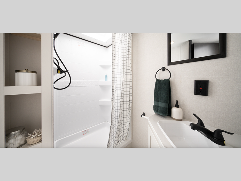 - Shower curtain with curved shower track (select models)