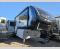 You're going to love every minute spent in this spacious fifth wheel that can sleep four. There is an inviting rear living area with a 72" tri-fold sofa and theater seating across from the televator and fireplace. The chef of your group can whip up dinner on the three burner cooktop or in the 30" residential microwave, and there is a 16 cu. ft. refrigerator that even opens when with the slide out is in. You will also enjoy the kitchen island with a farmhouse sink and roller cover, dual trash bins with a Stow N' Go paper towel holder, plus convenient dog bowls for your furry friends. You can store all your paper goods and snacks in the 84" pantry with adjustable shelving, and there is a hutch for nice dishes plus shoe storage in this model as well. Head to the front master bedroom where you'll find a queen bed with a TV, a large slide out with a wardrobe with drawers, plus a spacious bath.