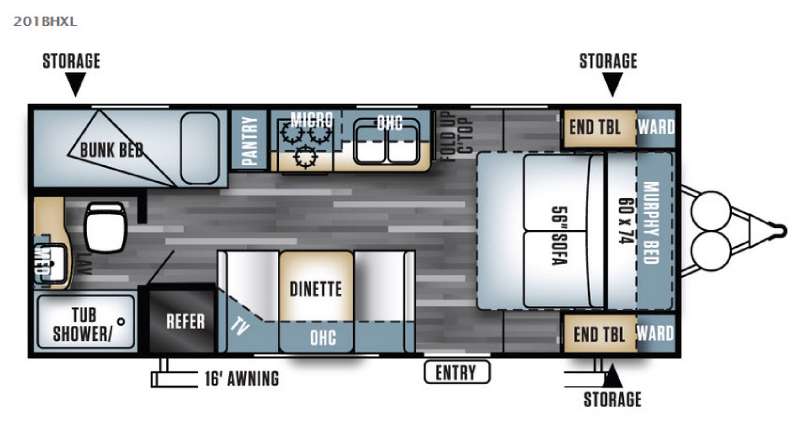 You will also enjoy plenty of storage with the front pass-through compartment, and rear storage space beneath the bunks, plus so much more!