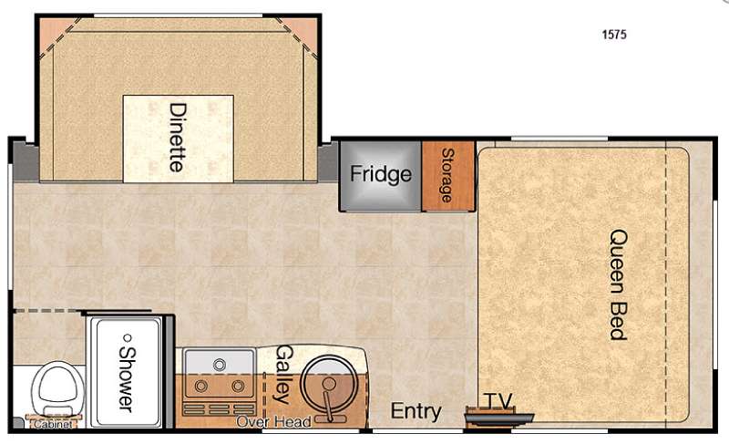 You will easily be able to cook light meals and snacks in this Lance 1575 kitchen area with a three burner range, round galley sink, and overhead cabinets for dishes and things. You can even add a microwave oven if you like, and so much more.